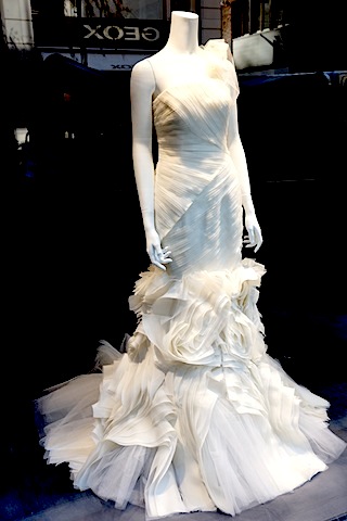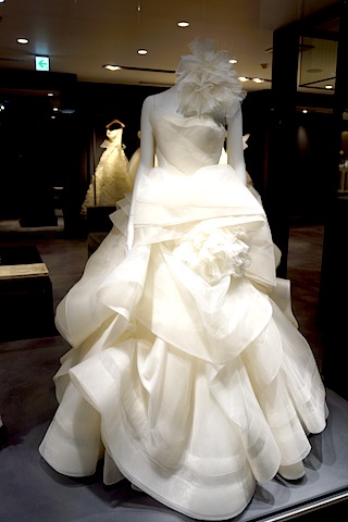 昨年7月にオープンしたVera Wang(ヴェラ・ウォン)日本初のブライダル旗艦店は、当サロンの隣の隣。毎日ショップの前を通るたびにうっとり、ハイエンドな素材が本当に美しいのです。ヴェラ・ウォン女史は「VOGUE」誌の史上最年少のファッションエディター兼スタイリストからデザイナーに転身。モード感に溢れ上品で洗練されたドレスは、今やウエディングドレスの最高峰だとか。将来、息子のお嫁さんや姪っ子に是非着てほしいドレスです。