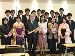 2012年03月23日 卒業式 雑記 今日は、息子の卒業式。あいにくお天気は小雨まじりでしたが、学生時代の締めくくりの佳き日を、女子学生も男子学生も満面の笑顔で迎えてました。「・・・気品の泉源、知徳の規範となって・・・」答辞の力強い言葉のように、4月からは新社会人となって大きく巣立っていってほしいですね。23年間を振り返ると、何だかとても感慨深い感動的な一日でした。『 卒業おめでとう!』 今時流行のハイカラさんな袴女子。髪飾りも色々アレンジして可愛いらしい。 達成感みなぎる満面の笑み