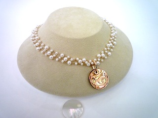 ヘッドはマッティオリの"SIRIANA" K18WG pendant with diamonds and mother of pearl |
