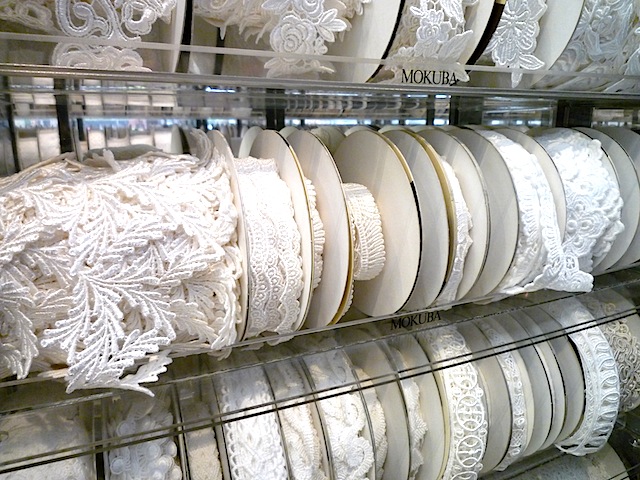 台東区蔵前にあるショールームには、何と約4万5千種類以上ものリボンやレース、パスマントリーが美しく並べられ、そのデザインの豊富さ、マテリアルの多様さ、品質の良さには圧倒されてしまいます。