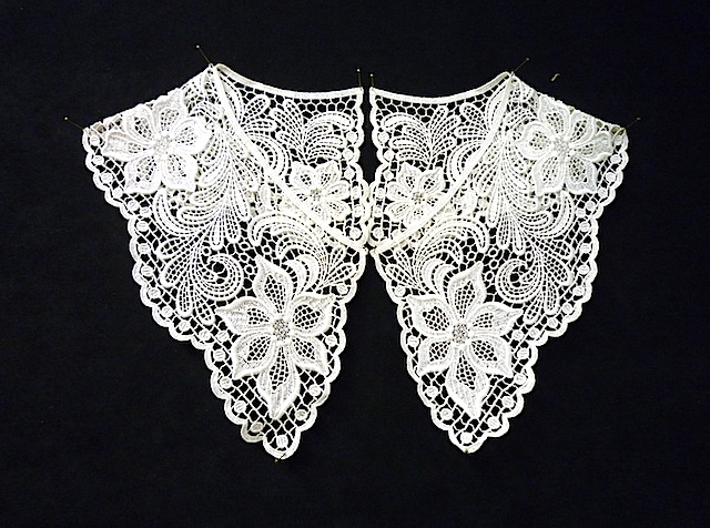 ↑左がフランスリバーレース Riechers Marescot社のものをネイビーに、右がイギリスリバーレース Cluny社のレースをブラックに染めてもらうことに。
