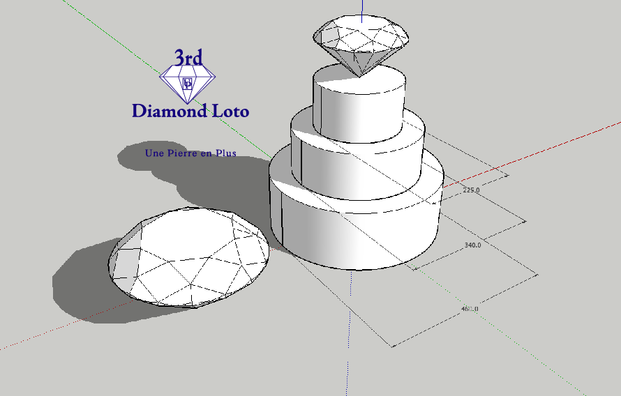 バランスが美しいダイヤモンドケーキの3D図面です。