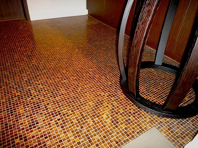 1884年の広告を、なんと1㎝モザイクタイルで復元。イタリアが誇るBisazzaタイル。眺めれば眺める程素晴らしいクラフトマンシップ!日本の職人さんには出来ない技らしいです。