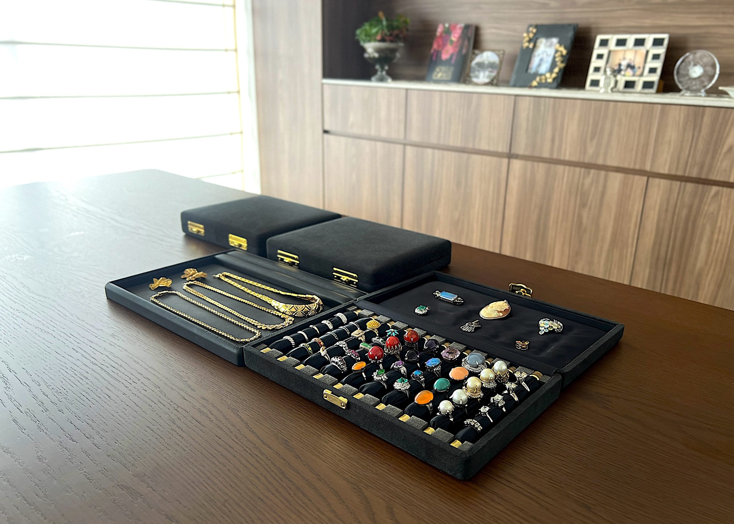 リングケース、ネックレスケース、フリーケース、時計ケースなど色々な仕様があるので、何箱か揃えたらスッキリ綺麗にまとまってホッとしました。ちなみに私はネックレスなどは、1点1点厚手の透明ビニール袋に入れ、ケースの中に縦に並べると、とても見つけやすく取り出しやすいので長年そのようにしています。