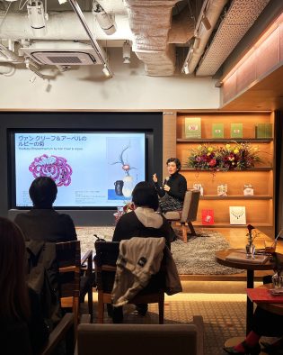 イベントでは、展覧会で観るジュエリーたちが、いかに日本や中国からインスピレーションを受けていたかというお話が展開され、非常に興味深く感じました。特に驚いたのが、当時のヴァニティーケースが日本の「印籠(いんろう)」にインスパイアされて作られたというお話です。また、コレクターたちが日本の古美術を競って蒐集していた歴史など、フランスのグランメゾンと日本の伝統工芸の深く美しい繋がりに触れました。ジュエリーの背景にある歴史や文化を知ることで、作品の見方がまた一層深まりますね。展覧会には私は2度訪れましたが、年明け18日が最終日です。