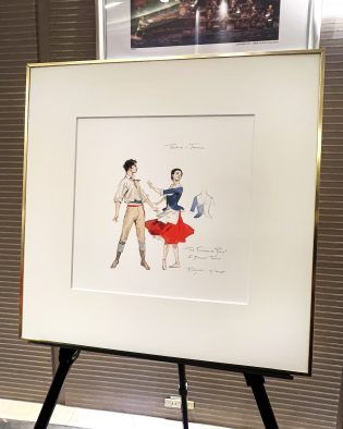 また、25分間の休憩時間も至福のひととき。2階ホワイエでは、5月初上演の『パリの炎』で使われるマリー・アントワネットの豪華な衣装や、他のキャストの衣装&舞台美術の絵コンテを間近に鑑賞することができました。熊川哲也氏の感性を受け継いだ、若き宮尾俊太郎芸術監督による新演出。次なる幕が開くのが、今から楽しみでなりません。