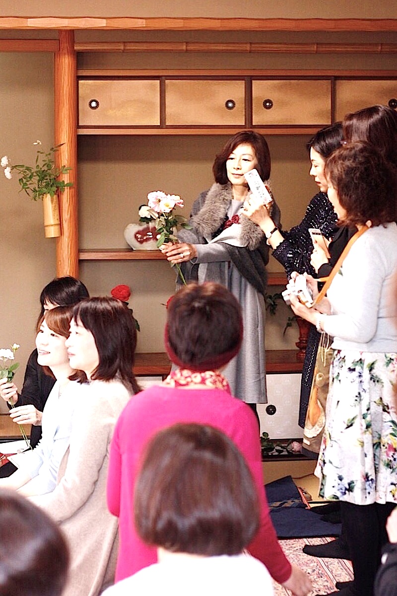 友人でフローリストの千秋さん主催『茶室を彩る和ばら』イベントに参加しました。京都左京区にあるお姉様宅“井筒庵”にて。呈茶のおもてなしから始まって、滋賀のバラ園 “ローズファームケイジ” 國枝健一氏によるトークとデモンストレーションの数々。一花ごと名前の由来や健一氏の和ばらへの愛情溢れるお話しに参加者全員がぐいぐい引き込まれ、3種類の大きなブーケが出来上がる頃には、井筒庵が和ばらの香りに包まれて、私も妹もそして皆さま方もうっとりと、とても心豊かな時間を過ごしました。こんなにも沢山、和ばらの種類があったのですね。そしてまだ名前が付いてない新種のばらを手に取って鑑賞できたのも大感激でした。千秋さん皆さま、ありがとうございました。
