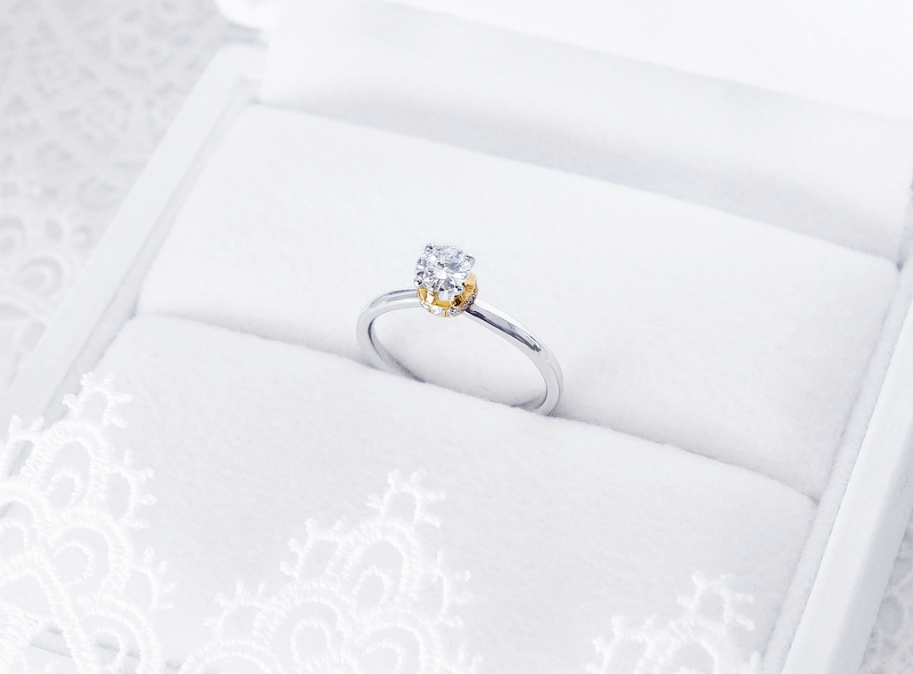 before エンゲージリングは左のダイヤと 右のメレダイヤを使って |