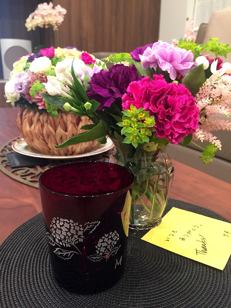 GW明け、社員旅行で箱根ガラスの森美術館に行って来ました。幸いにも日伊国交樹立150周年記念のヴェネチアン・グラス展を開催中で、珠玉の100点は素晴らしい名品ばかり!レストランでは生のカンツォーネでちょっとしたイタリア気分も味わい、初のサンドブラスト体験も皆で存分に楽しめました。一日中雨模様にも関わらずとても文化的で素敵な一日でした。今、我が家のテーブルは母の日のカーネーションに紫陽花グラスも加わって花盛りです。