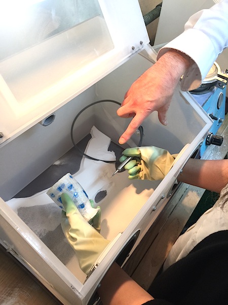 研磨用の砂を吹き付けます