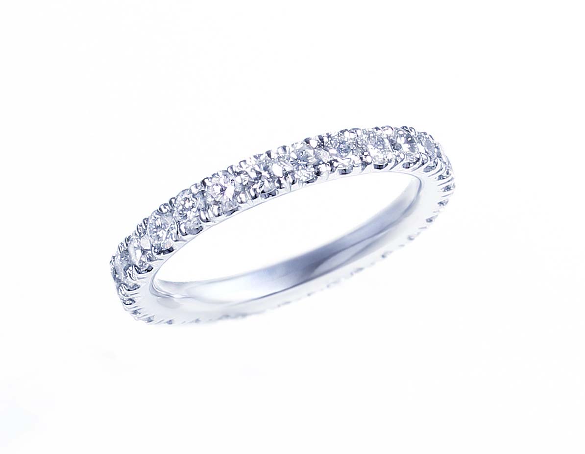 日頃頑張っているご自分へのご褒美にと念願だったピンキーリングのご注文をいただきました。ご相談から約40日後、丁寧に手作りしたフルエタニティピンキーリングが出来上がりました。「色々なリングを組み合わせて楽しみます。」K様の華奢な小指がキラリと煌めいてとても素敵です。