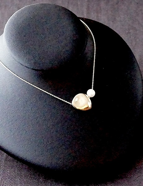 パールネックレスから外したパール1個とイタリアンパーツをチェーンに通しプチペンダントにした写真