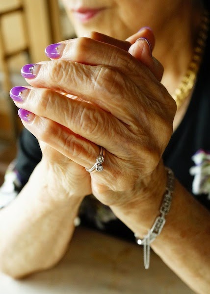 NYマダムのAdvanced Styleに引けを取らない母のネイルが素敵です。最近のお気に入りはワインレッドの逆フレンチにストーンを少々。今日はネイルサロンからこんな写メールが送ってきました。今月お誕生日を迎え、益々お洒落に磨きが掛かって私の方が負けちゃいそう。幾つになってもお洒落心を忘れないって、女性の強さの秘訣かもしれませんね。ピンキーリングも粋ですわ。