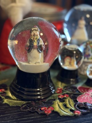 クリスマスシーズンには自宅のキャビネットにスノードームが並びます。昨年割れてしまったものもあり、今年は一つ買い足しました。新入りはなかなかチャーミングなキャラクターです。スノードームはキラキラと煌めいて、イルミネーションの華やかさとは違う魅力があります。