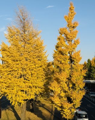 冬に向かい木々たちも秋から冬へとビジュアルが変わる時期です。銀杏も真っ黄色になりとても街が華やぎます。自宅近くの公園の並木通りは恒例の「イエローカーペット」と共に素敵な時期を迎えています。