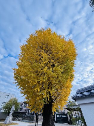 娘二人が通ったお寺の幼稚園には巨大な銀杏の木があり、シンボルツリーにもなっていました。残念ながら世代交代とはならず、数年前に長く続いた幼稚園は閉園となってしまったのですが、寺院内の銀杏は健在で通る人々が思わず写真を撮ったり眺めたりと楽しんでいらっしゃいます。