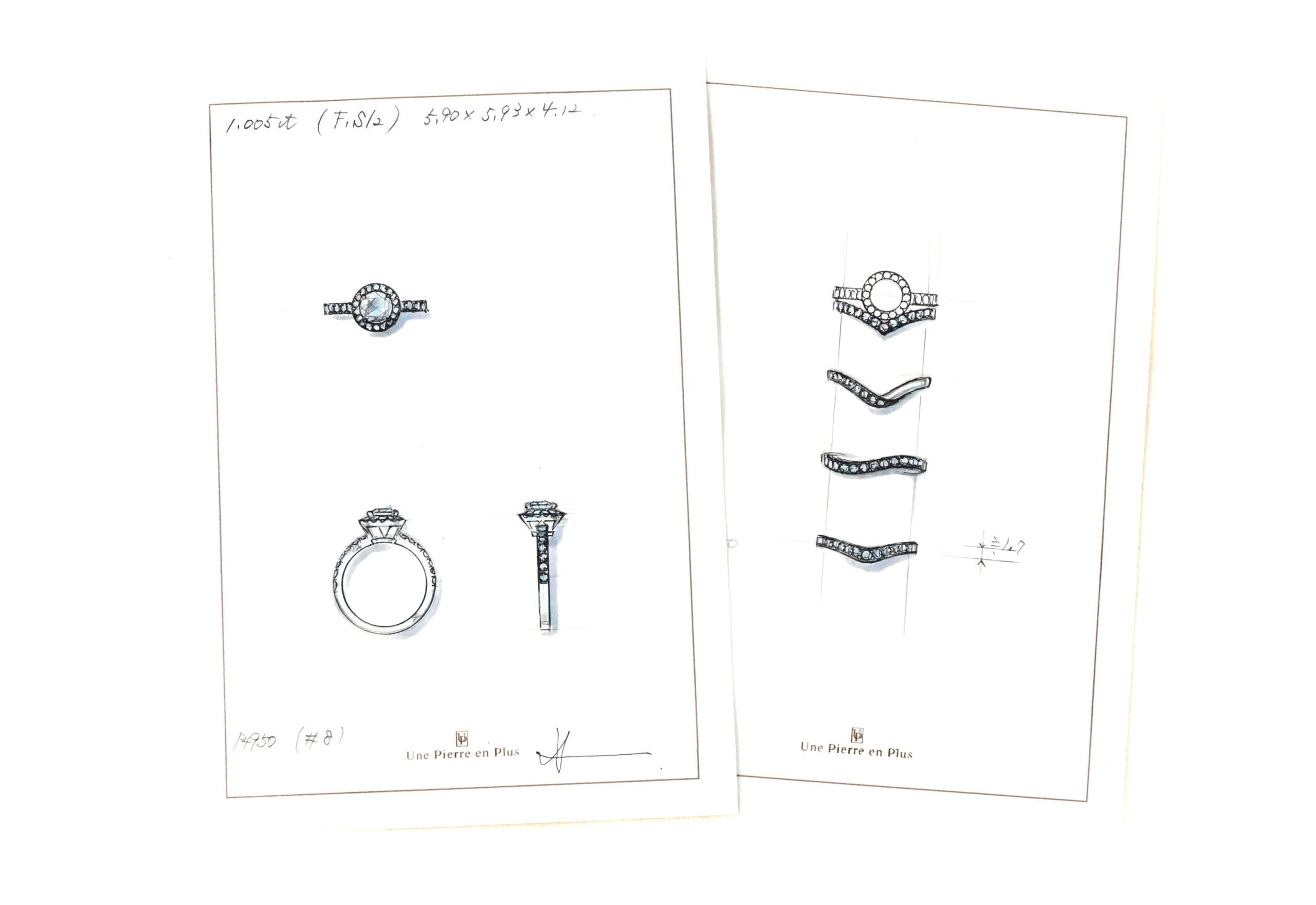 その場でお二人の目の前に原寸大のデザイン画を描き上げると、未来の指輪の姿がより鮮明に浮かび上がったご様子でした。